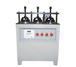 6、到压力上限时自动停止加压,此时恒压指示灯亮,按规定时间试验完成后,拧开注水口盖卸掉压力,再松开压圈取下试件,试验完毕。