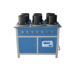 a、灌水:將注水咀的螺帽擰下,同時(shí)打開各個(gè)截門,把漏斗置于注水咀上,灌水于蓄水罐待其灌滿,并要求試模底盤內(nèi)也充滿水(作用在于排除管路系統(tǒng)內(nèi)的空氣)這時(shí)可將六個(gè)通向試模的截門關(guān)上。